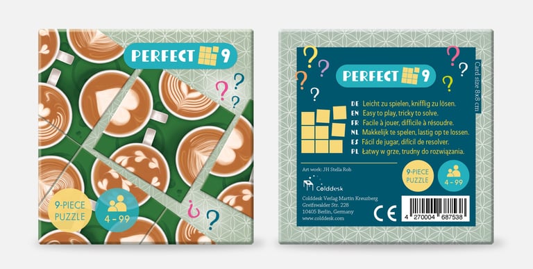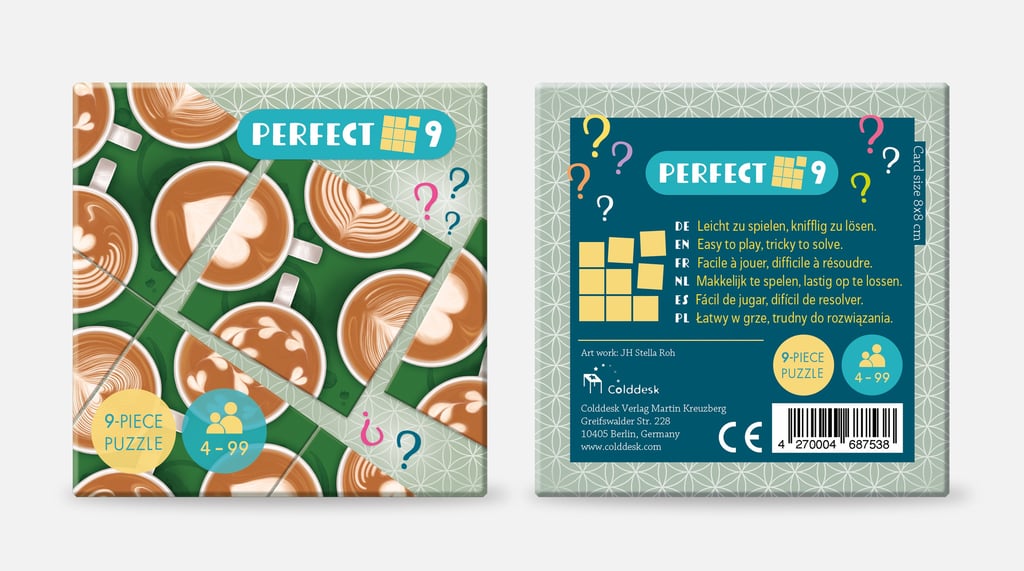 Ein Muss für Kaffee-Liebhaber:innen. Latte-Art-Motive in cremigem Braun und kräftigem Grün bringen echtes Café-Flair an den Spieltisch. Perfekt für eine meditative Pause zwischendurch.